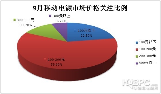 价格方面,人们最喜欢的还是100-200元这个价位的产品,关注度达到了60%。100元以下的产品占到了22.5%,这一部分就是比较追求价格优势。而200-300元的关注度为11.70%,300元以上的为6.20%,由此可见当前消费者最能接受的还是100-200元之间的移动电源产品。