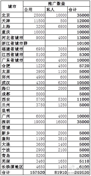 中国电池杂志-中国电池网11月30日讯(肖何 北京报道) 备受社会各界关注的28个城市或区域为第一批新能源汽车推广应用城市已于日前公布。据赛迪顾问投资事业部总经理吴辉测算,按照各城市新能源汽车的推广计划,到2015年,28个城市或区域将推广使用新能源汽车249530辆,其中公用为157520辆,私人购买81910辆,目标最高的为北京和深圳,均为35000辆。