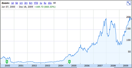 2008年,苹果的未来再次遭受分析人士的怀疑,担心消费者负买不起iPhone、iPod或Macintosh等苹果的产品。不过事实证明这一切的忧虑是多余的,在2000年代的10年里苹果股价再次增长了660.33%。