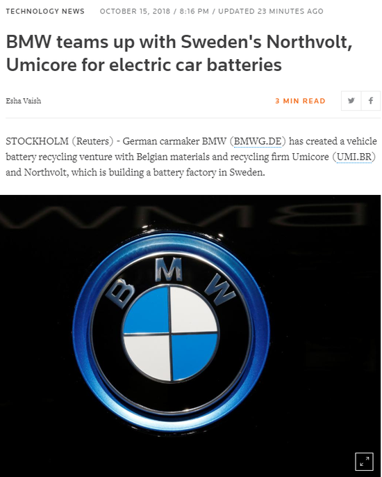 宝马表示,可能在未来从Northvolt采购电池,不过当前与该公司签订任何协议还为时过早,该公司正 ... 查阅全文