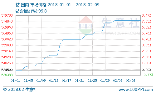 截止2月9日,金属钴报价575666.69元/吨,与周初钴价稳定。钴价均价较去年同期上涨83.24%。 ... 查阅全文 2018-02-11