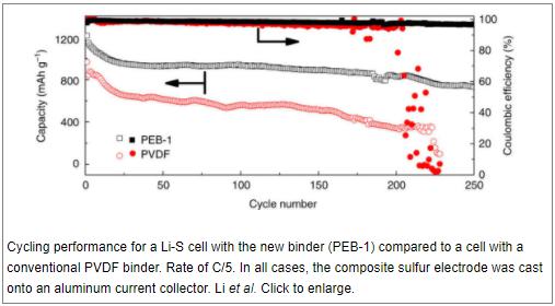 相较于传统型锂硫电池,新款聚合物粘合剂的电容量翻了一番,即使在高电流密度(high current den ... 查阅全文 2018-01-22