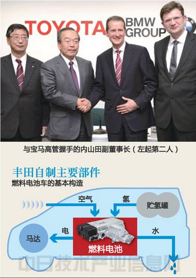 丰田就共同开发燃料电池车与德国宝马正式达成了协议。丰田将向宝马提供量产前的技术,将竞争对手拉入自已的阵营。这是丰田不再自恃自己有技术优势,而是著眼于未来霸权的深谋远虑的一