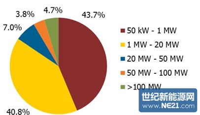 图二、美国超过2,400个光伏电站规模分布情况(50KW及以上)