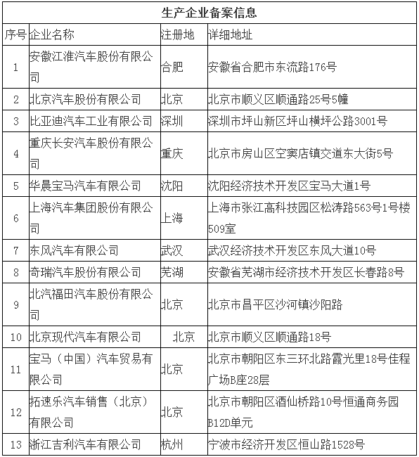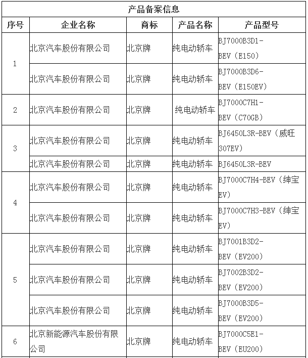 北京市示范应用纯电动小客车生产企业及产品备案信息