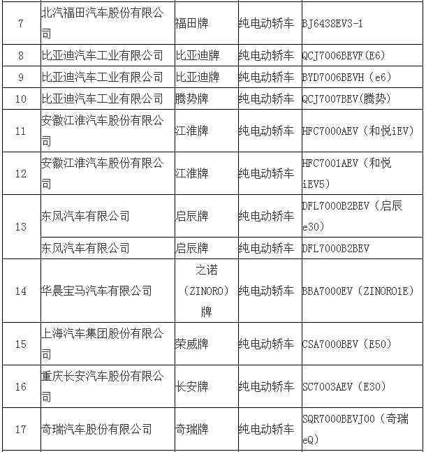 | 1 | 比亚迪汽车工业有限公司 | 比亚迪牌 | e5 | BYD7005BEV | —— |