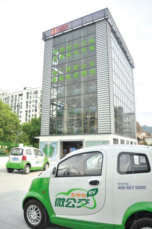 位于杭州古墩路的全国首座纯电动汽车智能充换电立体车库预计于下周进行试运行。该车库有两排5层的立体停车位,一共可容纳30辆车同时充电,市民可在此租赁电动汽车上路使用。为推动杭州纯电动汽车微公交项目计划,2013年底前杭州要建成30座以上包含分时租赁电动汽车配套设备的充电车库,初步建立起微公交网点系统。