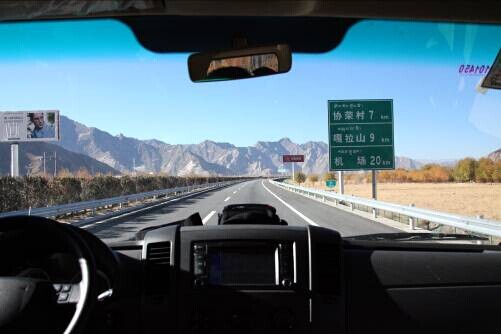东风御风纯电动汽车行驶在拉萨市区与贡嘎机场的路上