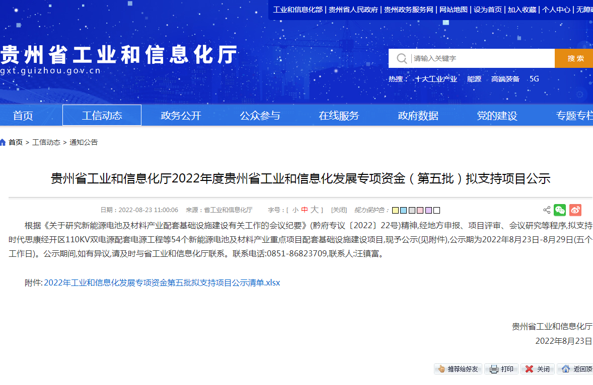 贵州省工业和信息化厅发布消息,根据《关于研究新能源电池及材料产业配套基础设施建设有关工 ... 查阅全文