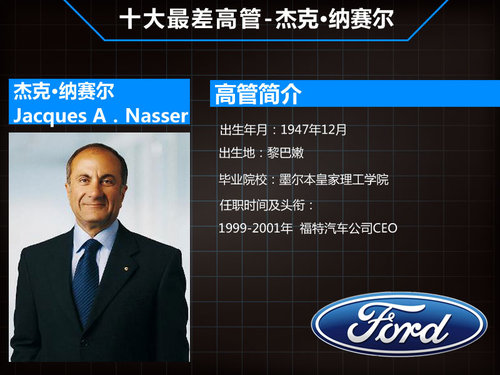 “最差CEO”原因:任职期间并没有给福特公司一个准确的定位,使福特在产品质量和新品推出上都落后于竞争对手