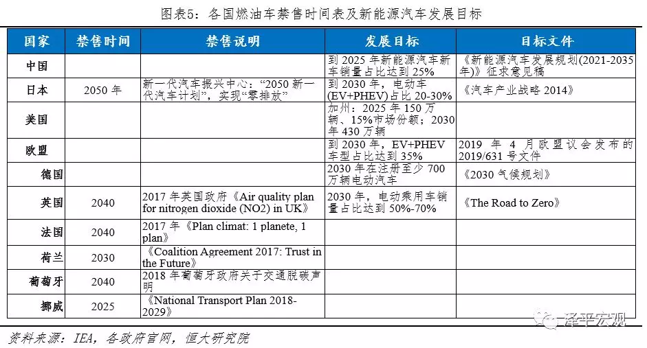 1)燃油车禁售:挪威最激进,英法随后、日本保守,中、美、德暂未出台文件。从各国官方披露来看,挪威、荷兰、英国、法国、葡萄牙、日本分别为2025、2030、2040、2040、2040、2050年。中、美、德暂未公布国家级燃油车禁售时间表:(1)中国:2019年8月工信部发布《对十三届全国人大二次会议第7936号建议的答复》指出,未来会因地制宜、分类施策,支持有条件的地方和领域开展城市公交出租先行替代、设立燃油汽车禁行区等试点;(2)美国:加州民主党议员Phil Ting于2018年提议2040年实行零排放,后不了了之;(3)德国:德国联邦参议院于2016年投票决定从2030年开始禁止欧盟销售汽油或柴油动力车辆,后无进展。