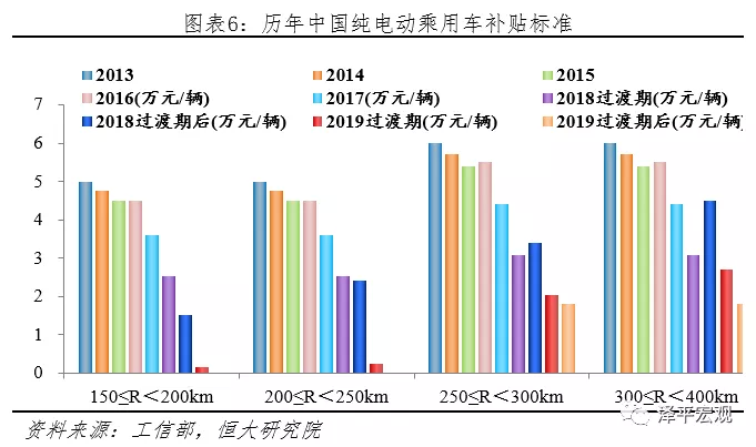 2)鼓励高能量密度、低电耗技术。以纯电动乘用车为例,2013-2016年财政补贴只考核续航里程,2017、2018、2019年分别增加了百公里电耗、能量密度、带电量三项指标;3)补贴转向运营端和基础设施建设。2018年11月四部委印发了“关于《提升新能源汽车充电保障能力行动计划》的通知”,要求引导地方财政补贴从补购置转向补运营,逐渐将地方财政购置补贴转向支持充电基础设施建设等环节。