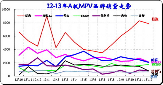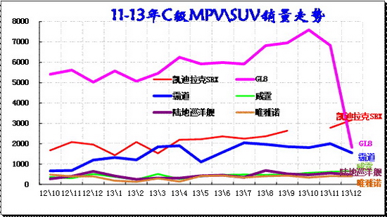 MPV市场的GL8始终一枝独秀,近几个月销量也攀升突破7000太水平。但12月GL8推出年型车同时收缩销量实现利润的合理配置。威霆、维亚诺的表现始终不温不火。