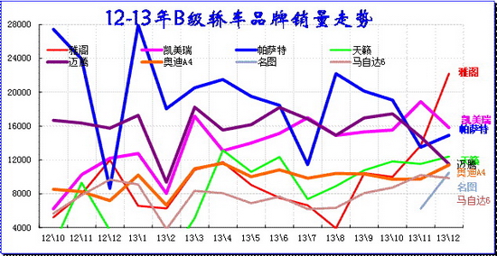 B级车形成三强低迷,群雄并起的局面。前期B级车的主力厂家已经被大众包揽,近期的日系进攻力度较强,中高级车仍是德日的争夺。日系的广丰、东风日产、广本在01月左右相继走强,这对德系形成一定的分流。德系的主力是政府采购和官商用车,日系是老板用车,因此日系的市场更强一些。