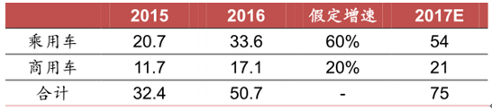 2017 新能源汽车销量预测(万辆)