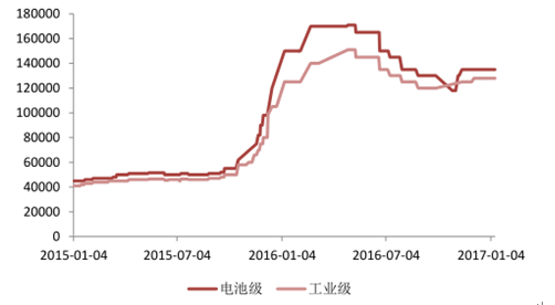 正极材料 :新增产能释放、行业竞争加剧 。2016 年多家企业大规模扩充产能,新增产能将于 2017 年释放,行业竞争加剧,行业整体盈利能力将下降。