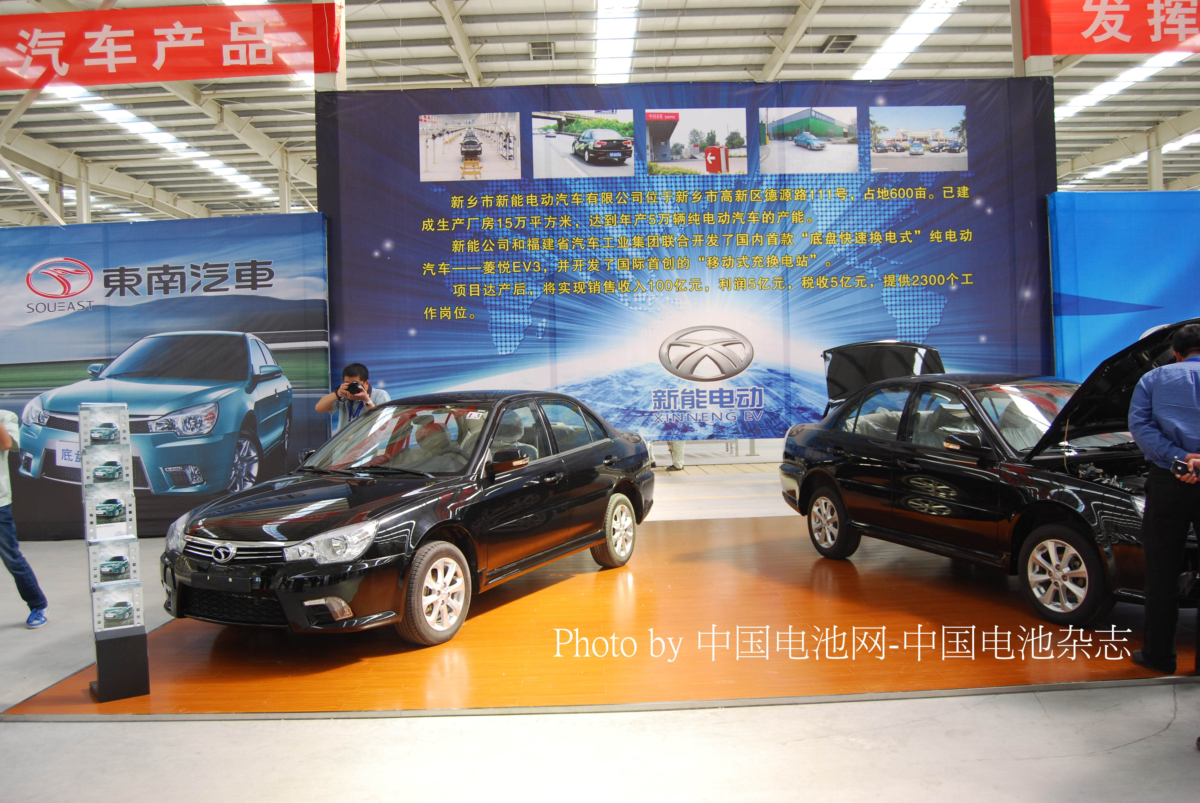 图为河南新乡新能电动有限公司联合东南汽车推出的菱悦EV3电动轿车,摄影:中国电池网/肖何