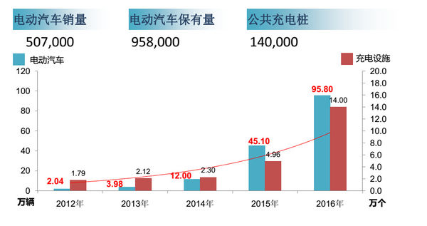 据中国电动汽车充电基础设施促进联盟(充电联盟)统计,截止到2016年12月,公共类充电桩建设、运营数量接近15万个,相较2015年末4.9万个净增2倍以上,中国充电基础设施公共类充电设施保有量全球第一,明显高于其他国家。