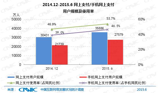 2014.12-2015.6网上支付/手机网上支付用户规模及使用率