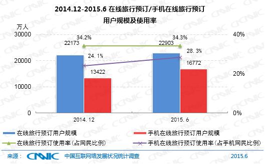 2014.12-2015.6在线旅行预订/手机在线旅行预订用户规模及使用率