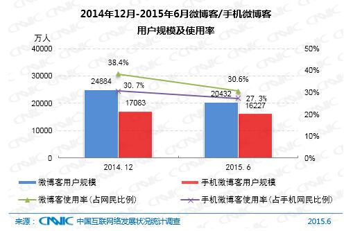 2014.12-2015.6年微博客/手机微博客用户规模及使用率