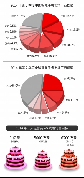 当北京三里屯众人排队抢购iPhone的疯狂场景渐去渐远,当三星“盖世”系列智能手机的星光日渐黯淡,如今在中国的大街小巷、餐厅、地铁车厢内,手握华为、联想、酷派、中兴、小米等国产手机的人比比皆是,此时谁也不能否认,国内智能终端市场格局已经悄然改变。苹果、三星曾经一统天下的局面不复存在,国产手机群体崛起,大洗牌正在持续进行。与此同时,伴随国内4G商用大幕的拉开,一场不见硝烟的4G终端争夺战也在如火如荼地展开。4G时代,谁能笑傲江湖,华为、联想还是小米,更加令人热切期待。