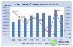 据中国海关总署公布的数据显示,2013 年中国铅矿砂及精矿进口量为149.3万吨,同比下降17.76%。 ... 查阅全文 2014-02-10