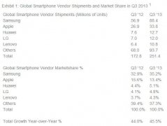 根据Strategy Analytics最新发布的调查报告,全球智能手机第三季度发货量超过2.5亿部,同比增长45%。 ... 查阅全文