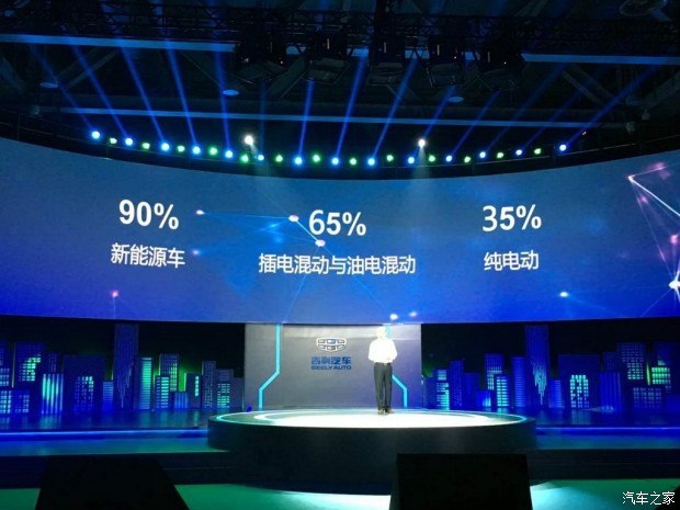 3、实现到2020年新能源汽车销量占吉利整体销量90%以上;其中,插电式混动与油电混动汽车销量占比达到65%,纯电动汽车销量占比达35%;