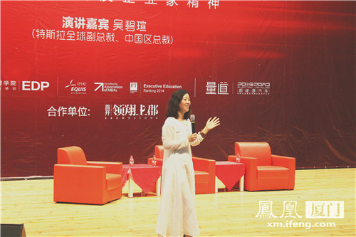 吴碧瑄有着丰富的跨国公司管理经验,在加入特斯拉之前,曾在麦肯锡、摩托罗拉、苹果等公司担任高管。今天她带来了关于特斯拉、关于企业发展、关于理想等方面的亲身感悟,让现场观众深受启迪。