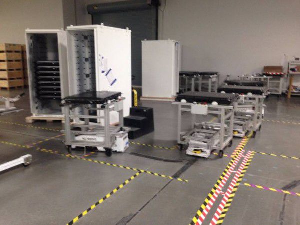 无人搬运车近照。