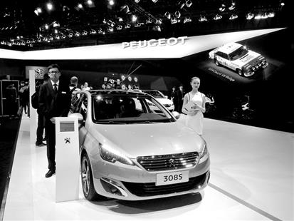 百公里加速4秒、最高时速可达250公里,车展现场,东风标致混合动力概念车308R也吸引了不少眼球。