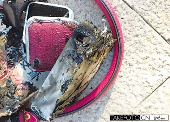 北京晨报网2013年11月6日讯:"充电宝放在包里没有使用,突然就起火了。”前日,市民毛女士遭遇惊险一幕,“一路跑到公司,突然发现包里冒烟起火,赶紧叫同事帮着灭火,等火灭了打开包一看,原来是充电宝着了,吓死了。”毛女士表示,事发时确定看见明火,“包里没有可能起火的东西,只可能是充电宝自燃,但我当时根本没有用啊。”毛女士称,这个充电宝是朋友送的礼物,并未关注品牌,使用了将近半年时间。