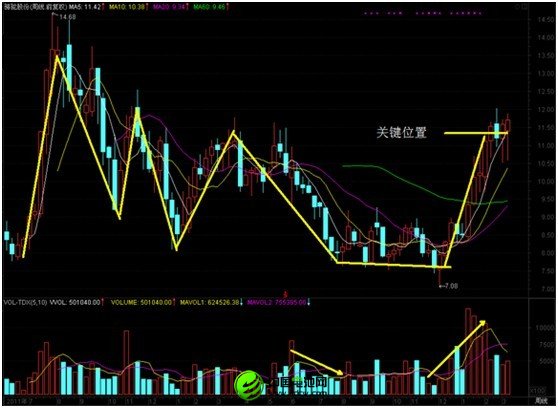 再来看周线图,这样我们可以有一个更广泛的视野,该股是2011年6月首发上市,在上市后经历了一波大幅拉升,成交量巨幅放大,随后开始震荡下探走势。在周线图中,投资者需要关注以下几个要点:1、该股在震荡下跌过程中,始终保持着放量上涨,缩量下跌走势,这说明买入的力量大于卖出的力量;2、该股自去年4月份开始,构筑了一个为期8个月左右的一个标准杯柄形态,整个底部构筑在4个月左右,时间比较充分;3、目前该股正在构筑杯柄位置,一旦突破11.40元关键位置便是买入关键点;4、自去年底开始的这波拉升,成交量巨幅放大,显示有资金介入的迹象,这样的资金交投力度,很大概率上是机构资金所为;5、美中不足的是该股杯柄形态的构筑处于200日周K均线以下,显示该股的股价强度不够,这是值得投资者忧虑的一点。