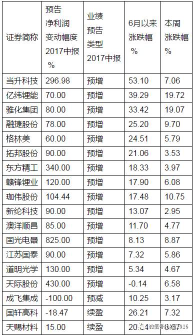 据wind数据,锂电池概念板块相关个股达到55只,其中有35家公司已发布中报业绩预告。这些公布预告的公司中,21家预计净利润实现同比增长,其中预增超100%的公司有7家,分别为国光电器、天际股份、东方精工、当升科技、道明光学、赣锋锂业、珈伟股份。(见附表2)