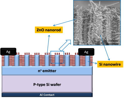 嵌入ZnO纳米线的黑硅太阳能电池结构示意图