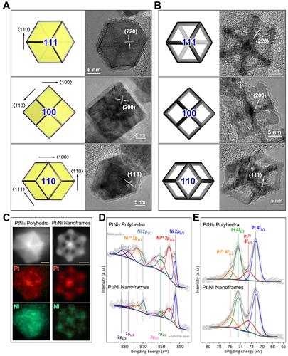 Yang说:“相比其他的人工合成中空纳米结构的尝试,我们的做法不需要通电、不需要使用过强的氧化剂,只需在空气中自发进行。铂-镍纳米框架的开放结构满足了先进纳米点催化剂设计中的一些法则,如高面容比、好的三维接近性、更少的贵金属用量等。”