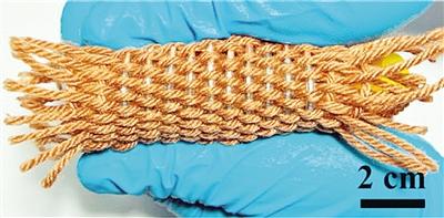 纤维状全锂离子电池可被织成衣服为可穿戴式电子产品供电。美国化学学会提供