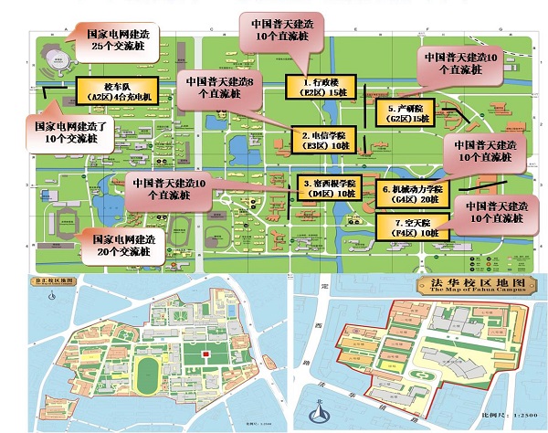 这样的场景,在交大的校园中并不罕见。交大已先后在五个校区建桩128个,桩的类型涵盖了直流桩,交流桩,交直流一体桩以及太阳能充电桩,产品包含了国家电网、中国普天、循道,以及交大自主研发等多个品牌,构成了基础设施网络。