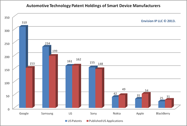 根据专业机构Envision-IP分析统计,目前谷歌、三星电子、LG电子、索尼、诺基亚、苹果和黑莓都已经获得了大量和汽车有关的专利,显示在智能汽车和混合/电动汽车的发展中,科技公司可能已经超越汽车厂商成为主角。