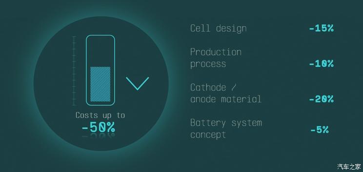 大众集团提出“标准电芯”概念,并在标准化电芯中植入大量智能化的技术。在此前提下,电池将不仅作为一个单独的零部件存在,还会成为整车的一部分,日后车辆将围绕电池为核心进行进一步研发。未来,大众汽车集团也将聚焦于标准化电池,通过一体适用型电芯设计以及大规模量产的能力,大幅度的降低电池成本。初步分析,大众电池的成本最高可下降50%。