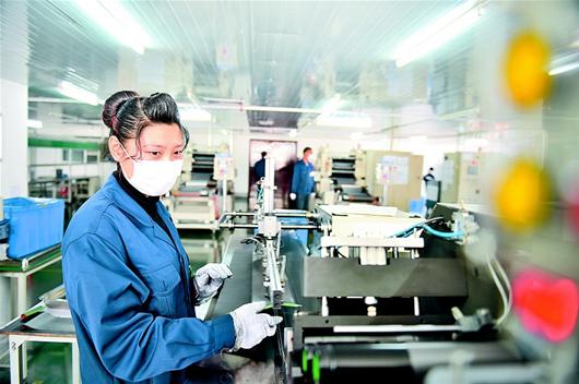宜昌市夷陵区宇隆新能源公司工人对锂离子电池产品进行充电激活,公司6条生产线正在加紧生产
