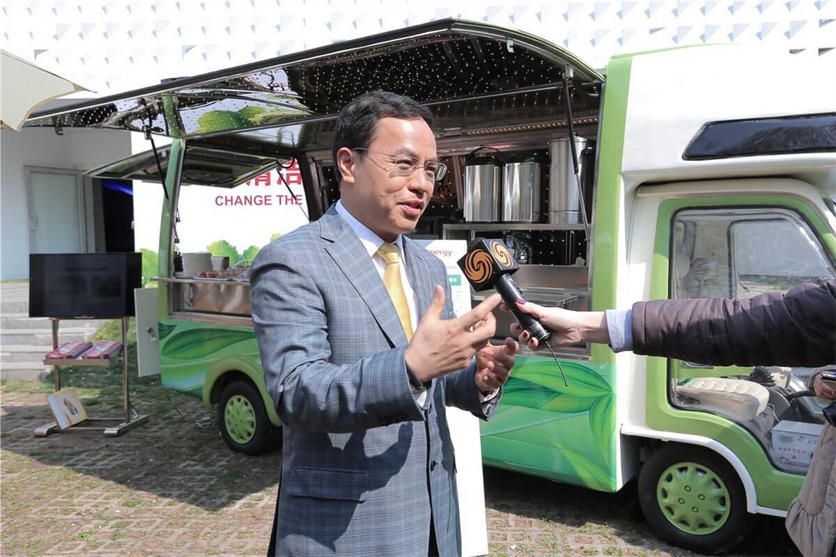 发布会上,汉能还与专业的移动厨房生产商山东泰安长安餐饮设备有限公司启动战略合作。凭借汉能移动能源应用技术,双方共同打造全球首款太阳能全工作用电餐车。移动餐车上集成的薄膜发电组件,在正常光照条件下每天可发6度电,可以实现餐车照明并为冷藏柜、豆浆机、煎锅、蒸锅等各类餐车电器供电。太阳能发电可以满足该移动厨房全部设备用电量,保障日常经营,并从真正意义上实现了零排放。此外,通过与太阳能组件的结合,该餐车设备大多采用直流供电方案,最大限度的降低能耗,是中国餐饮设备及车辆界的创新之作。