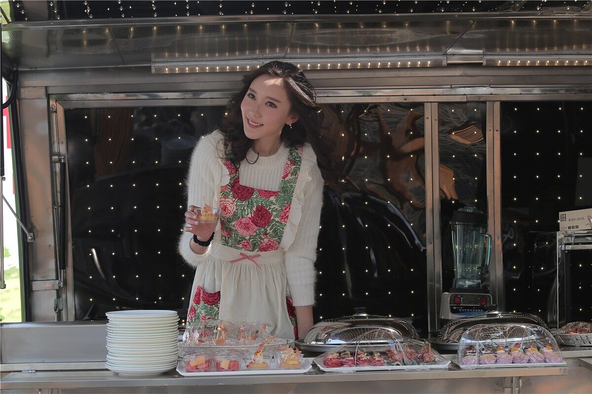 厨师在太阳能全工作用电餐车烹饪