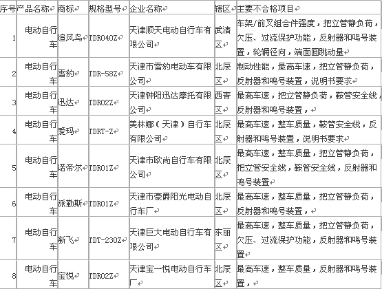 本季度抽查了91家电动自行车生产企业生产的91批次产品,合格83批次,合格率为91.21%。存在的问题主要是最高车速、制动性能、整车重量、把立管静负荷、欠压过流保护、反射器等项目不合格。最高车速和制动性能不合格,在消费者路面骑行缺乏安全意识的情况下,会造成紧急情况无法有效制动,形成重大安全隐患。重量超标会造成电动车行驶时惯性增加,制动距离变长。把立管静负荷项目不合格会造成把立管耐冲击性能变差,使用中易变形,造成安全隐患。欠压过流保护项目主要是对蓄电池和电机的保护,避免造成蓄电池过放电和电机发热,影响其使用寿命。反射器项目不合格容易造成自行车在夜间骑行时,无法被明确辨认,存在交通事故隐患。