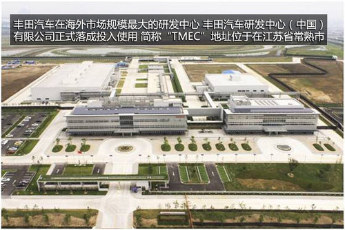 2013年11月14日,丰田汽车在海外市场规模最大的研发中心:丰田汽车研发中心(中国)有限公司简称“TMEC”在江苏省常熟市正式竣工并投入使用。中心投资达50亿元人民币,从奠基到竣工开业仅仅用了两年的时间。TMEC到2015年将实现实现混合动力汽车的马达、电池、逆变器等核心组件国产。届时,国产的普锐斯/凯美瑞-尊瑞混合动力车型主要零部件将实现国产,制造成本进一步降低,售价将有一定下降。