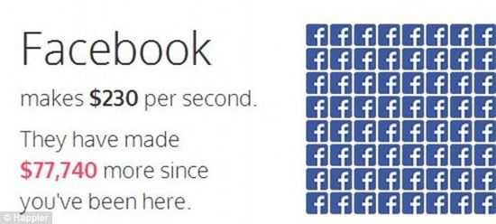Facebook是上榜企业中唯一的社交网络公司,每秒赚进230美元(约合人民币0.14万元)。