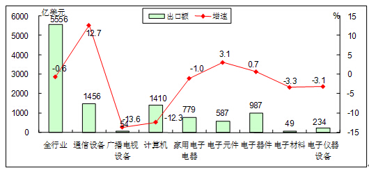 一、通信设备行业发挥引领作用,传统整机行业进出口持续负增长