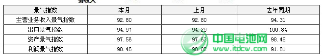 从分指标运行指数来看,2013年9月中轻主营业务收入景气指数92.80,出口景气指数94.97、资产景气指数97.56、利润景气指数90.46。从同比增长情况来看,各项指标均低于去年同期水平,其中出口指数下降明显,;利润指数月度环比增长出现上升,走出趋冷区间。