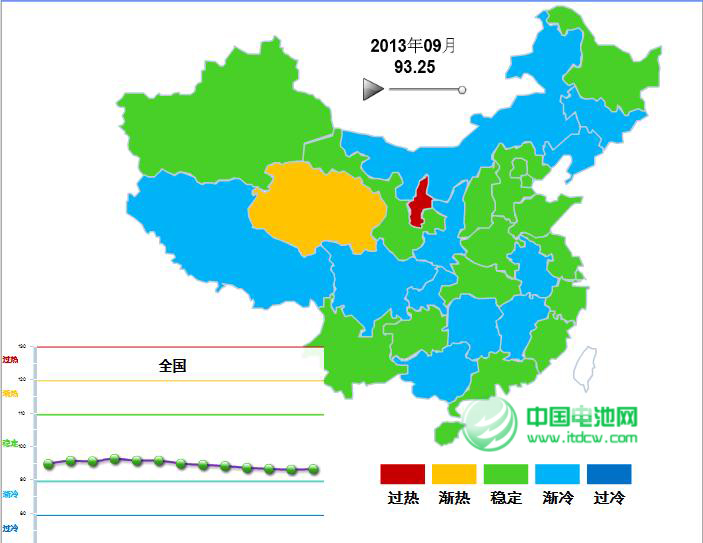 2013年9月,中国轻工业信息中心对全国轻工行业31个行业进行监测,电池、制糖仍然维持过冷区间,5个行业进入趋冷区间,整体行业景气情况如下: